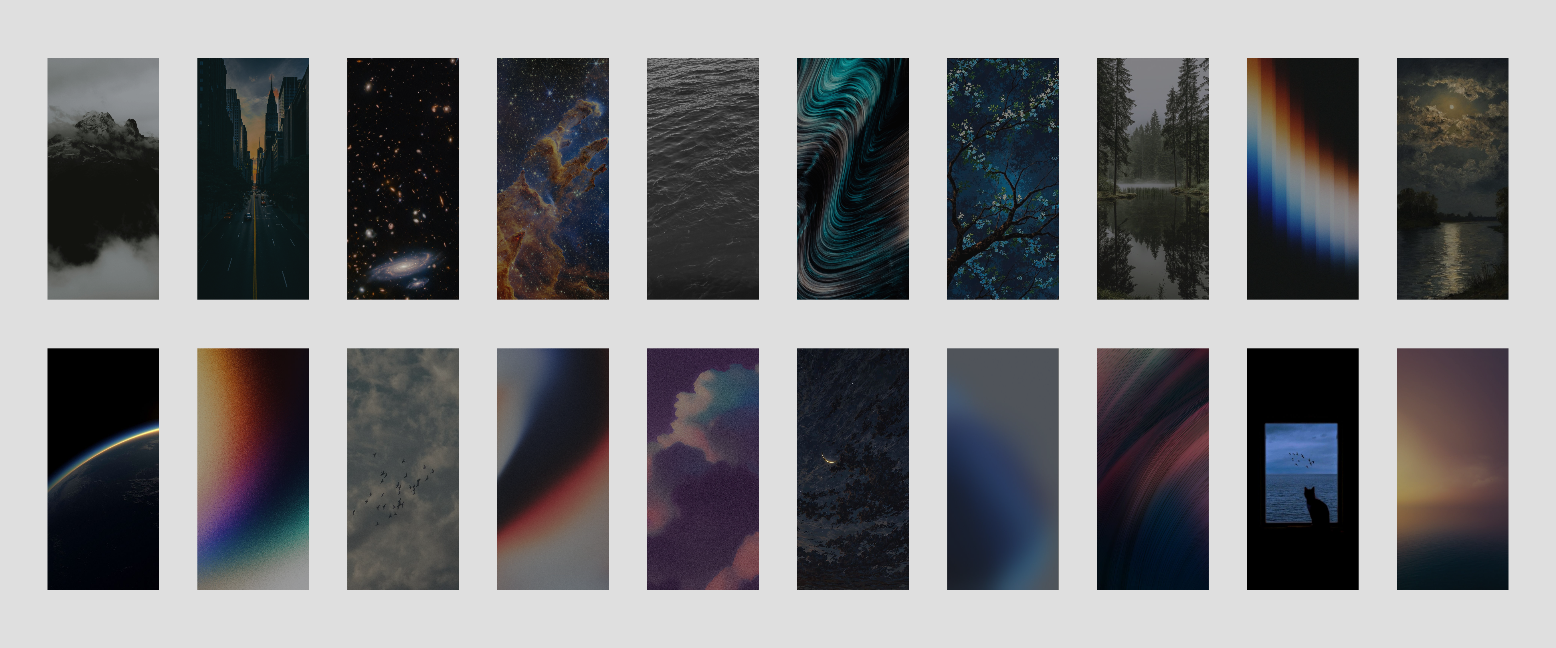 Dark Mode is a pack of 20 premium, HD smartphone wallpapers featuring stunning dark theme imagery of space, nature, urban landscapes and gradient patterns.